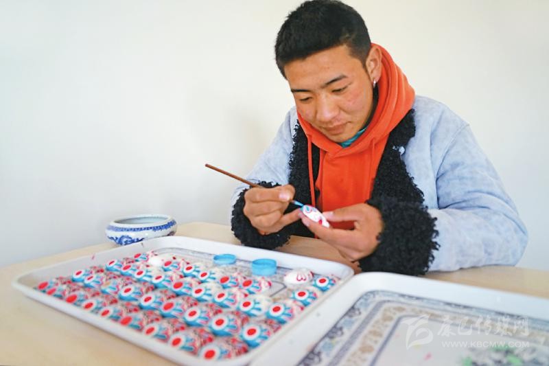 本著自主自愿的原則,教學(xué)班結(jié)束后,65名藏族青年主動(dòng)加入扶貧彩繪實(shí)訓(xùn)班,成為項(xiàng)目的第一批學(xué)員?!皩?shí)訓(xùn)期間不需要交任何費(fèi)用,還包吃住。我對(duì)畫京劇臉譜很有興趣,我們第一個(gè)月學(xué)習(xí)繪畫基本功,第二個(gè)月開始,根據(jù)成品質(zhì)量,就可以計(jì)件得酬勞,學(xué)習(xí)期間我每月能掙500多元?!壁雠f(shuō)。