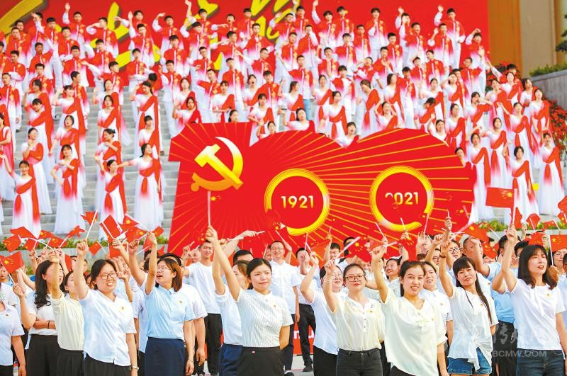6月30日,遂寧市市民中心廣場,社會各界代表1000余人齊聲高唱《唱支山歌給黨聽》,慶祝中國共產黨成立100周年。劉昌松攝