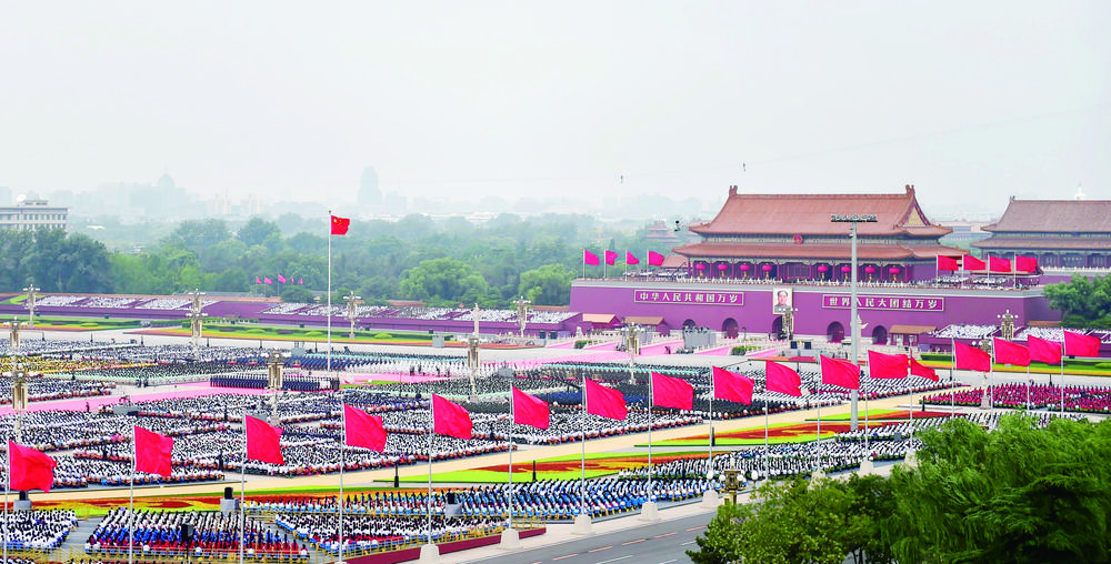 廣場上,百響禮炮響徹云霄,三軍儀仗隊步履鏗鏘,戰機編隊呼嘯長空,青少年合唱團縱情高歌……所有的一切,都是為了慶祝中國共產黨百年華誕這一偉大神圣的時刻。