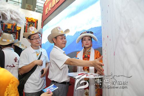 康巴傳媒網深圳15日電(記者 袁飛 宋志勇文/圖)今天的深圳國際會展中心熱鬧非凡,上午10:15分,隨著州委副書記、州長、代表團團長益西達瓦,州委常委、宣傳部長、州總工會主席相洛,州委常委、副州長張昊,副州長葛寧觸動的啟動球的轉動,“世界康巴·圣潔甘孜”主題展館正式開館,我州成為第十屆中國(深圳)國際文化產業博覽交易會最先開館的地區。這標志著甘孜州第一次在深圳文博會落地,并由此走向世界。