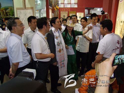 視察中,劉奇葆興致勃勃地觀看了我州文化形象展示大屏幕和非物質(zhì)文化遺產(chǎn)展示、土特產(chǎn)品及民間工藝品。他來到藏文書法、藏族噶瑪嘎孜畫派、藏族藥泥面具制作技藝等非物質(zhì)文化遺產(chǎn)項目和土特產(chǎn)品展品前,仔細詢問這些藝術(shù)品的生產(chǎn)工藝、制作流程等情況后,對我州深厚的文化底蘊和豐富的旅游資源連連稱贊,殷切希望甘孜州傳承好歷史文化,發(fā)揮好民間藝術(shù)非遺項目,走文化