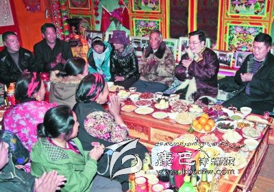“開展群眾工作以來(lái),大家在思想上發(fā)生了很大變化,不像過去比誰(shuí)的房子大、誰(shuí)耍得好,現(xiàn)在比的是誰(shuí)家培養(yǎng)了幾個(gè)大學(xué)生、掙了多少錢。”道孚縣鮮水鎮(zhèn)農(nóng)民謝康生說(shuō),“這兩年,胡書記每年都和我們一起過春節(jié),我們很高興。”今年1月27日,農(nóng)歷臘月二十七,州委書記胡昌升冒著嚴(yán)寒,來(lái)到道孚縣與謝康生等六戶結(jié)對(duì)的藏族“親戚”歡慶新春、共度新年。