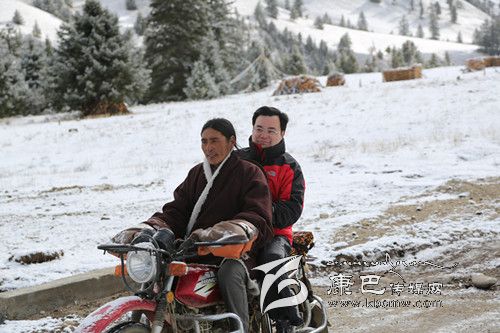 胡昌升搭乘牧民的摩托前往不通公路的波雄高山牧場。