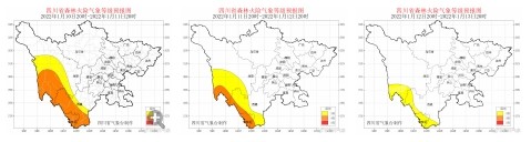 需要注意的是,據最新氣象資料分析: 1月11~12日,川西高原及攀西地區西部、南部基本無降水,空氣干燥,攀西地區西部、南部及甘孜州西南部的森林火險氣象等級為3~4級。13日川西高原及攀西地區大部有陣雨(雪),攀西地區西部、南部及甘孜州西南部的森林火險氣象等級為3級。