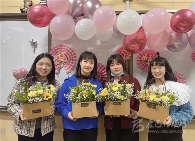 青白江華嚴小學校長為過生日的老師送鮮花