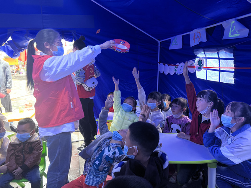 地震發生后,我州新時代文明實踐中心萬名志愿者第一時間深入一線,投入救災,開展搭建帳篷、應急備勤、秩序維護、人員信息登記、物品發放等工作。同時,首個“青青兒童樂園”在磨西鎮中心的貢嘎廣場臨時安置點落地,為災區兒童持續開展學習輔導、健康衛生、游戲活動、心靈陪伴、防災減災等五大領域的志愿服務。