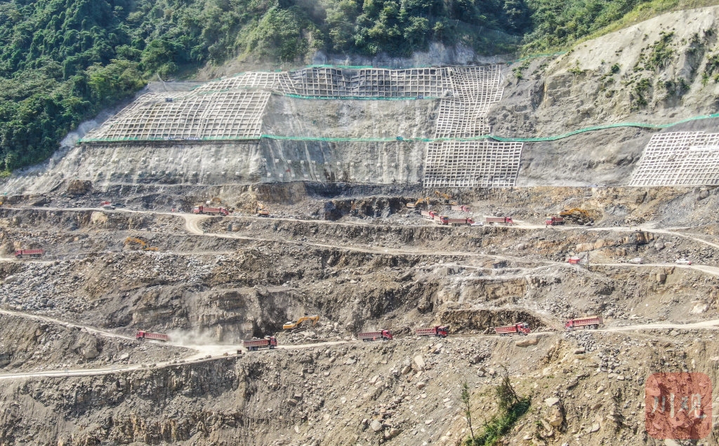 “四季度我們拿出了決戰(zhàn)的姿態(tài),加大了石料開采和運輸強度。挖掘機從之前8臺增加到13臺,重型卡車也保持在80輛至120輛之間,后面還將增加到150輛左右?!睋?jù)張鐸介紹,天氣好的時候,料場還要進行夜間施工。