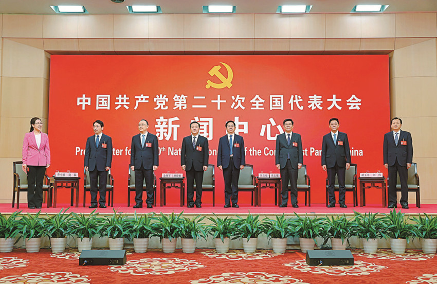 10月18日,中國共產黨第二十次全國代表大會新聞中心舉行集體采訪,請北京、天津、河北、山西、內蒙古、遼寧、吉林代表團新聞發言人出席,介紹代表團學習討論二十大報告情況,并回答記者提問。 新華社記者 陳建力 攝