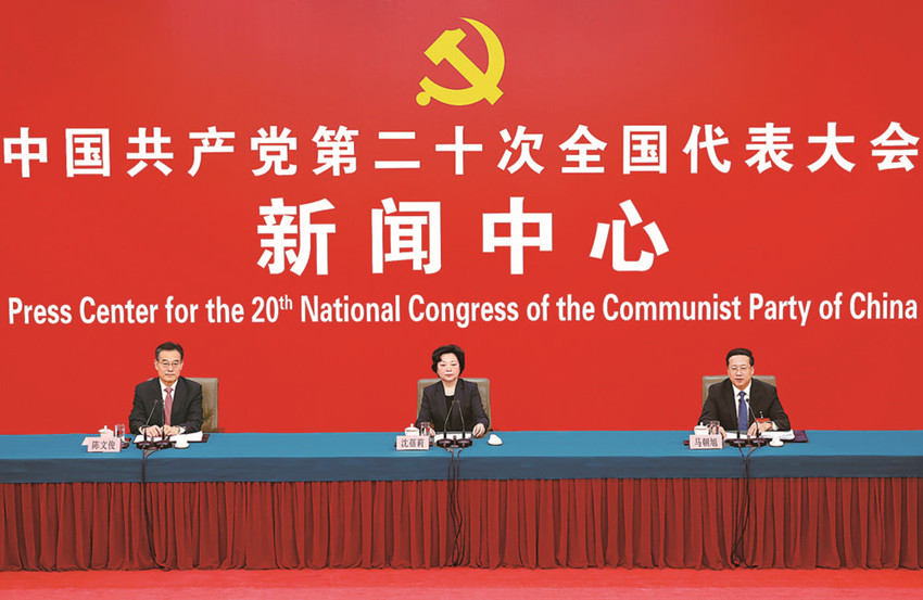 10月20日,中國共產(chǎn)黨第二十次全國代表大會新聞中心舉行記者招待會。中央對外聯(lián)絡(luò)部副部長沈蓓莉,外交部黨委委員、副部長馬朝旭圍繞“習近平外交思想指引中國特色大國外交開拓前行”主題與記者交流。 新華社 發(fā)