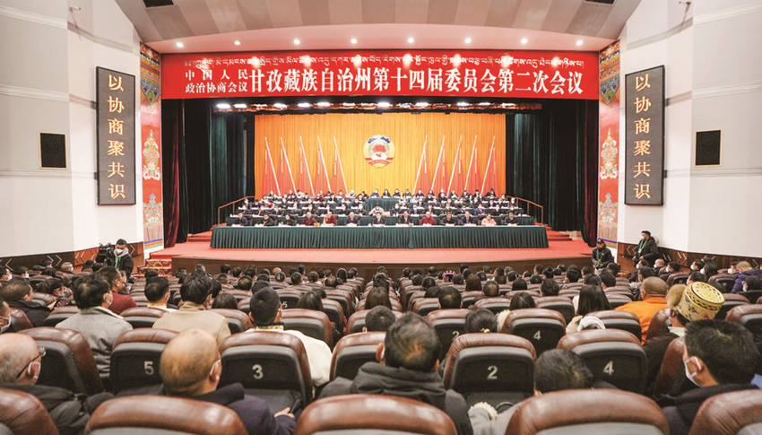 繼往開來,再譜新篇。州十三屆人大二次會議,是在全黨全國各族人民深入學習宣傳貫徹黨的二十大精神、闊步邁上全面建設社會主義現代化國家新征程、向第二個百年奮斗目標進軍的關鍵時刻召開的一次十分重要的大會。會議以黨的二十大和省委十二屆二次全會、州委十二屆四次全會精神為指引,高舉習近平新時代中國特色社會主義思想偉大旗幟,全面貫徹落實新時代黨的治藏方略和省委涉藏工作部署,凝聚共識、堅定信心,動員和號召全州各族人民,堅定鑄牢中華民族共同體意識,堅持和完善人民代表大會制度,不斷發展全過程人民民主,為建設團結富裕和諧美麗社會主義現代化新甘孜而團結奮斗。