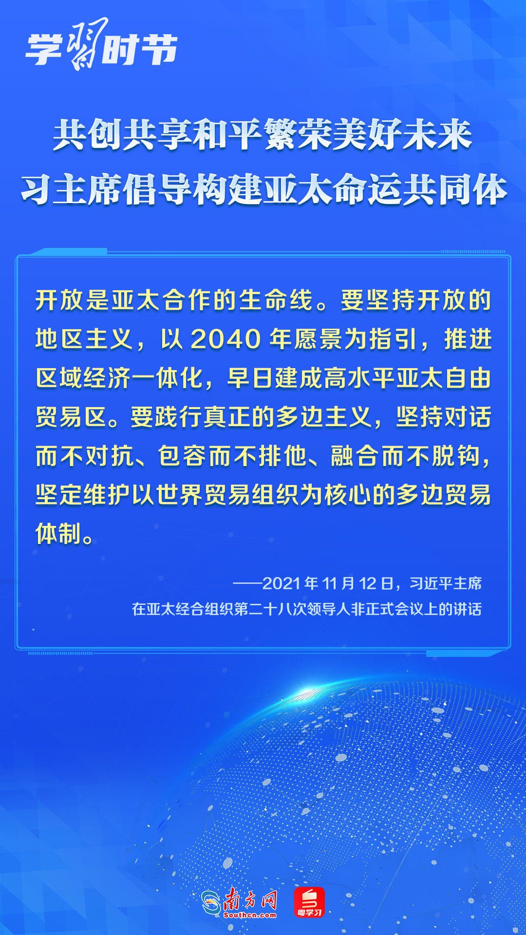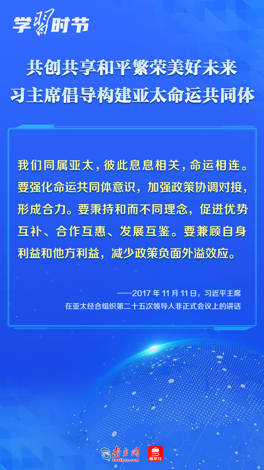 中國(guó)一直是APEC的積極參與者、貢獻(xiàn)者,為推動(dòng)建設(shè)亞太大家庭發(fā)揮了重要作用。習(xí)近平主席多次出席APEC會(huì)議,以中國(guó)主張促進(jìn)亞太合作,以中國(guó)貢獻(xiàn)推動(dòng)亞太發(fā)展,以中國(guó)智慧凝聚亞太共識(shí),多次闡述構(gòu)建開放包容、創(chuàng)新增長(zhǎng)、互聯(lián)互通、合作共贏的亞太命運(yùn)共同體的理念主張和重大意義,讓我們一同學(xué)習(xí)。