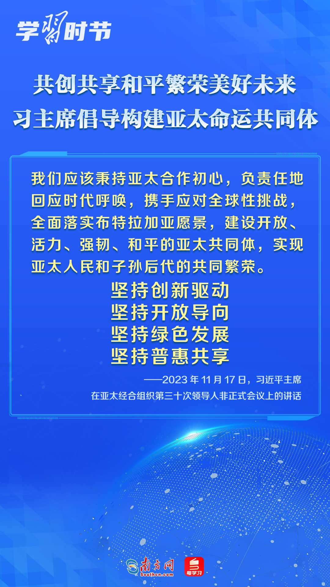 從舊金山再出發,中國愿同美國共同推動中美關系持續改善發展,愿與各國攜手共進,推動實現亞太人民和子孫后代的共同繁榮。
