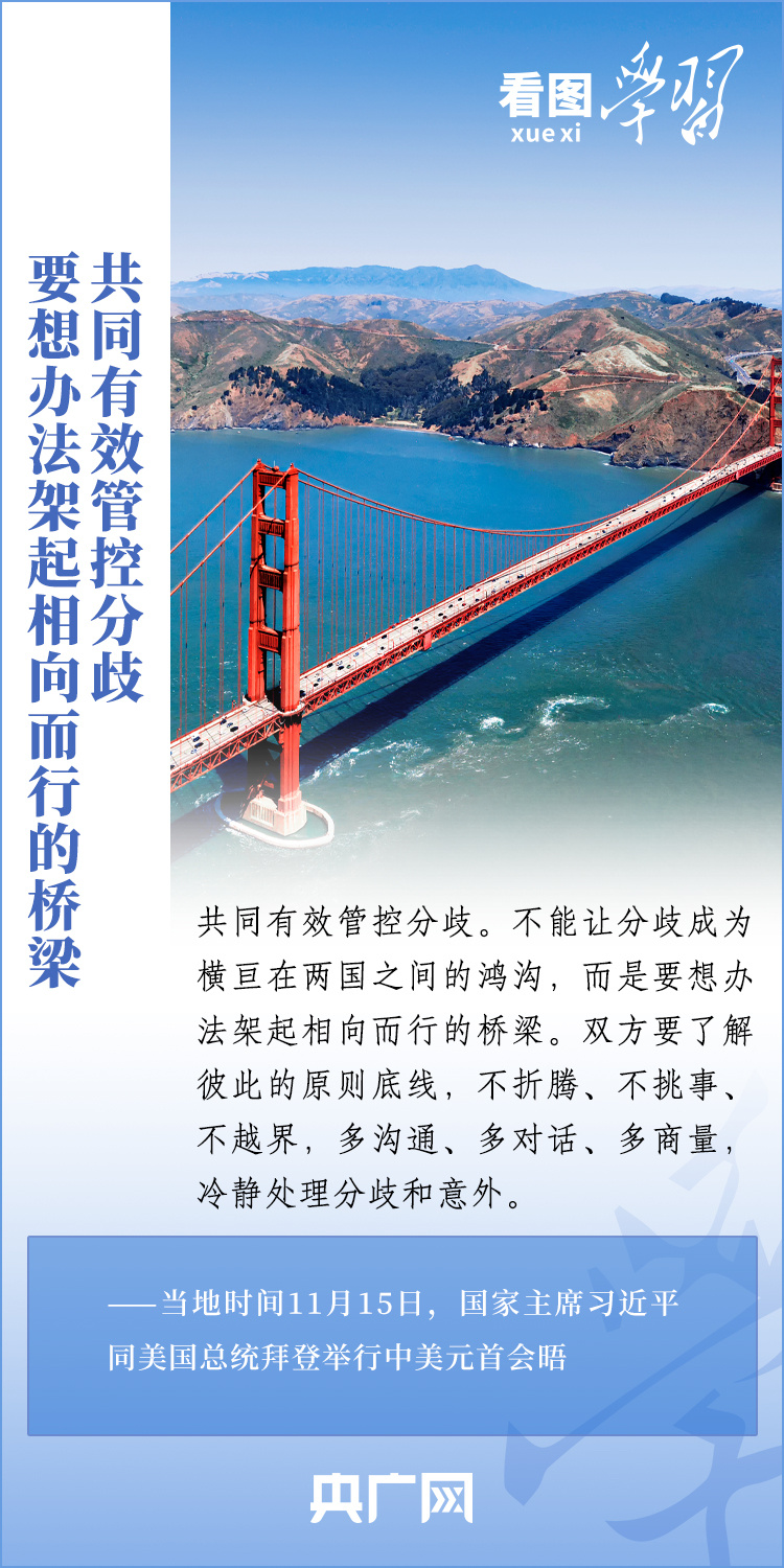 當(dāng)?shù)貢r(shí)間11月15日,國家主席習(xí)近平在美國舊金山斐洛里莊園同美國總統(tǒng)拜登舉行中美元首會(huì)晤。兩國元首就事關(guān)中美關(guān)系的戰(zhàn)略性、全局性、方向性問題以及事關(guān)世界和平和發(fā)展的重大問題坦誠深入地交換了意見。習(xí)近平主席指出,大國競(jìng)爭(zhēng)解決不了中美兩國和世界面臨的問題。這個(gè)地球容得下中美兩國。中美各自的成功是彼此的機(jī)遇。一起來學(xué)習(xí)!
