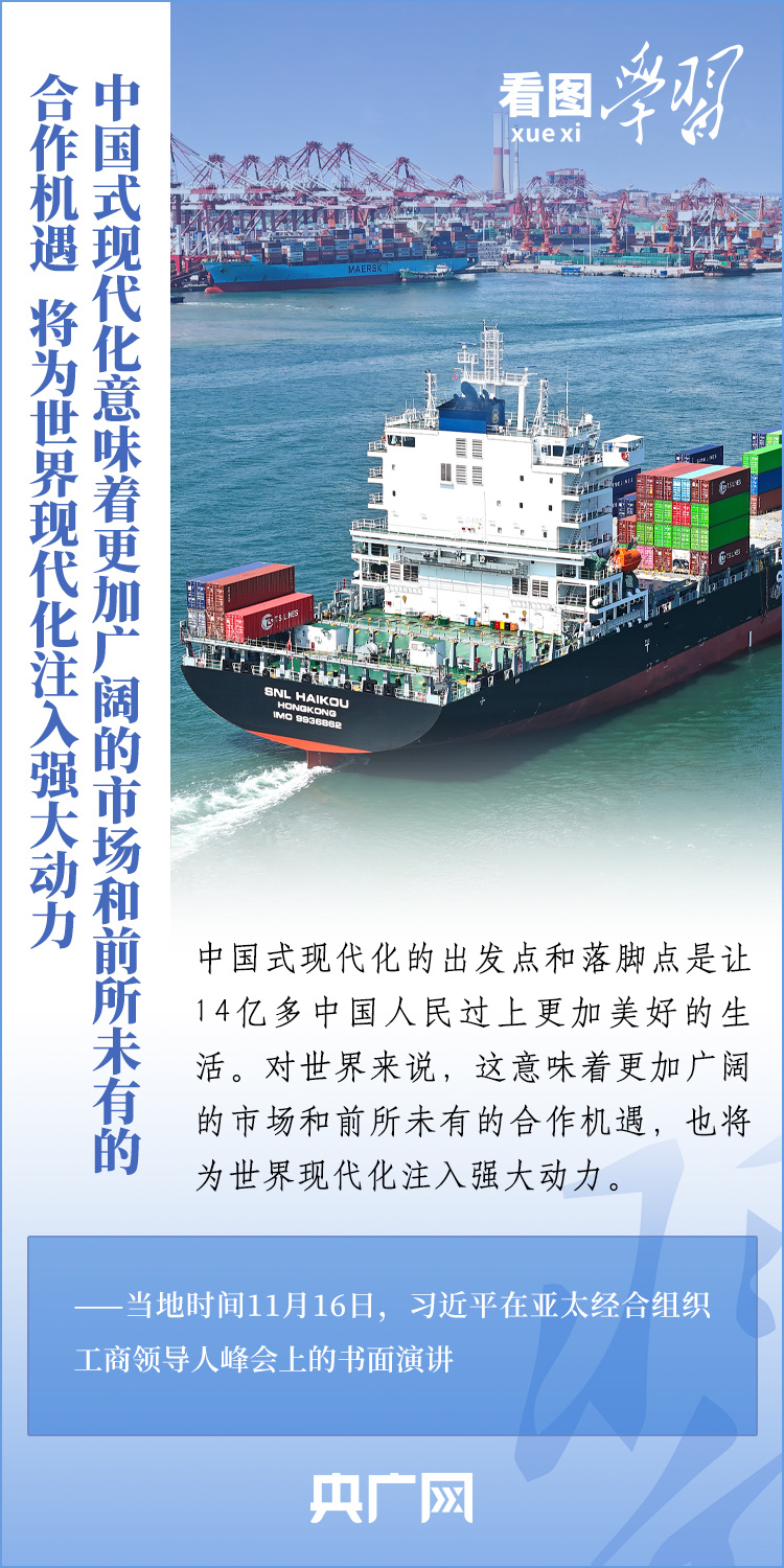 當地時間11月16日,國家主席習近平應邀出席亞太經合組織工商領導人峰會并發表書面演講。習主席深刻總結了亞太經濟合作30年來非凡成就和啟示,對亞太合作下一個30年將走向何方這一新的時代之問提出中國答案,重申“中國打造市場化、法治化、國際化營商環境的決心不會變,一視同仁為外商投資提供優質服務的政策不會變”,向全球工商界發出邀請,歡迎“積極參與中國式現代化進程,共享中國高質量發展帶來的巨大機遇!”一起來學習。