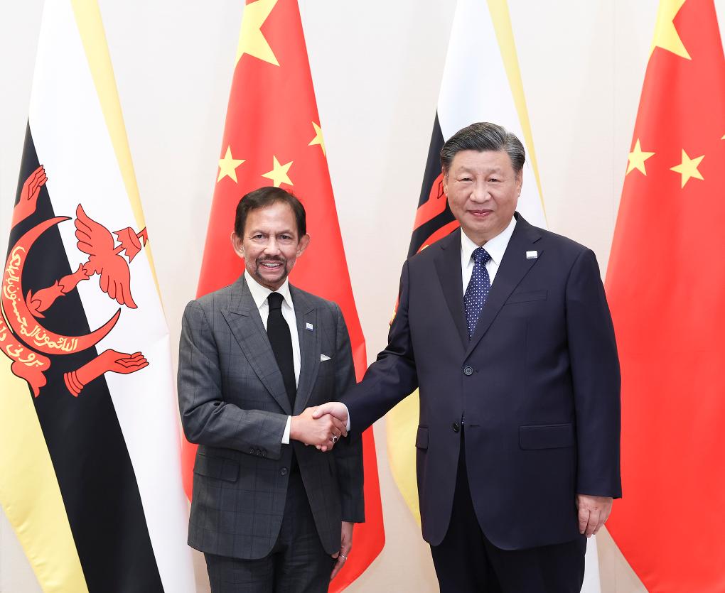 當地時間11月16日下午,國家主席習近平在舊金山會見文萊蘇丹哈桑納爾。