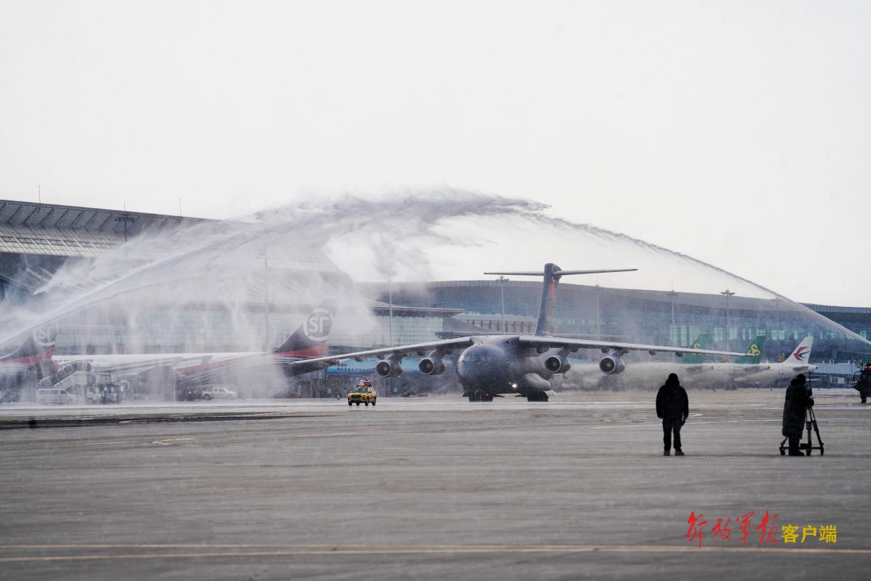 運-20專機通過“水門”。中國軍網記者劉丹 攝