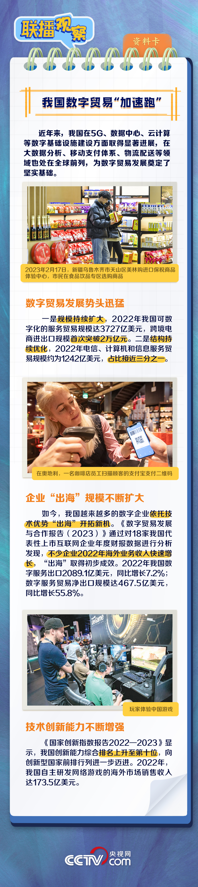 當前,貨物貿易和服務貿易都呈現出不可逆的數字化轉型趨勢。什么是數字貿易?本屆數貿會有什么看點和亮點?我國數字貿易有何發展成果?央視網《聯播觀察》與您一同了解。