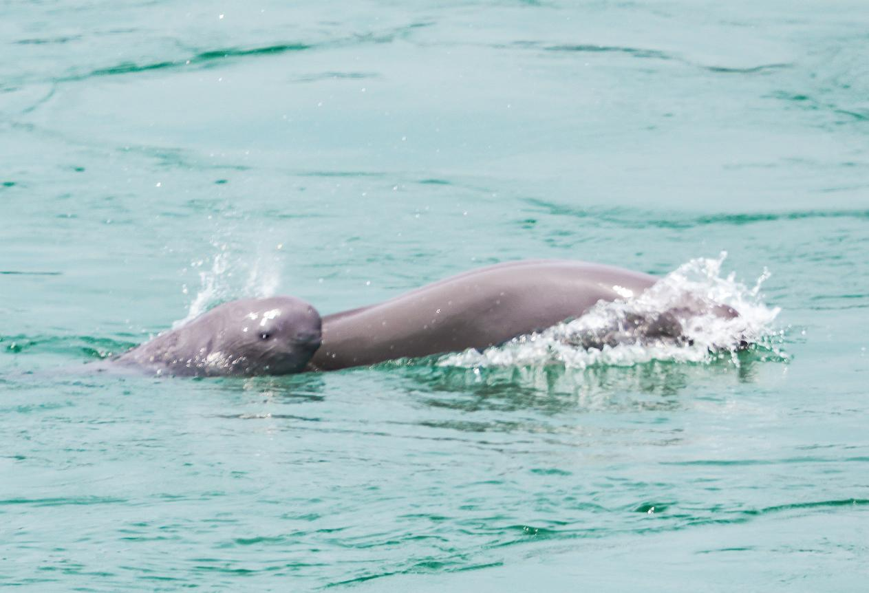 △湖北省宜昌市,江豚在葛洲壩下游水域逐浪嬉戲(2023年5月20日攝)。根據農業農村部2023年2月28日公布的2022年長江江豚科學考察結果,長江江豚種群數量為1249頭。與2017年上一次科學考察相比,江豚數量出現了止跌回升的歷史性轉折。