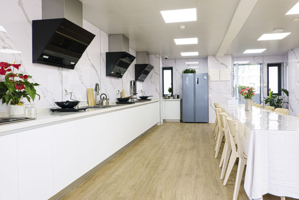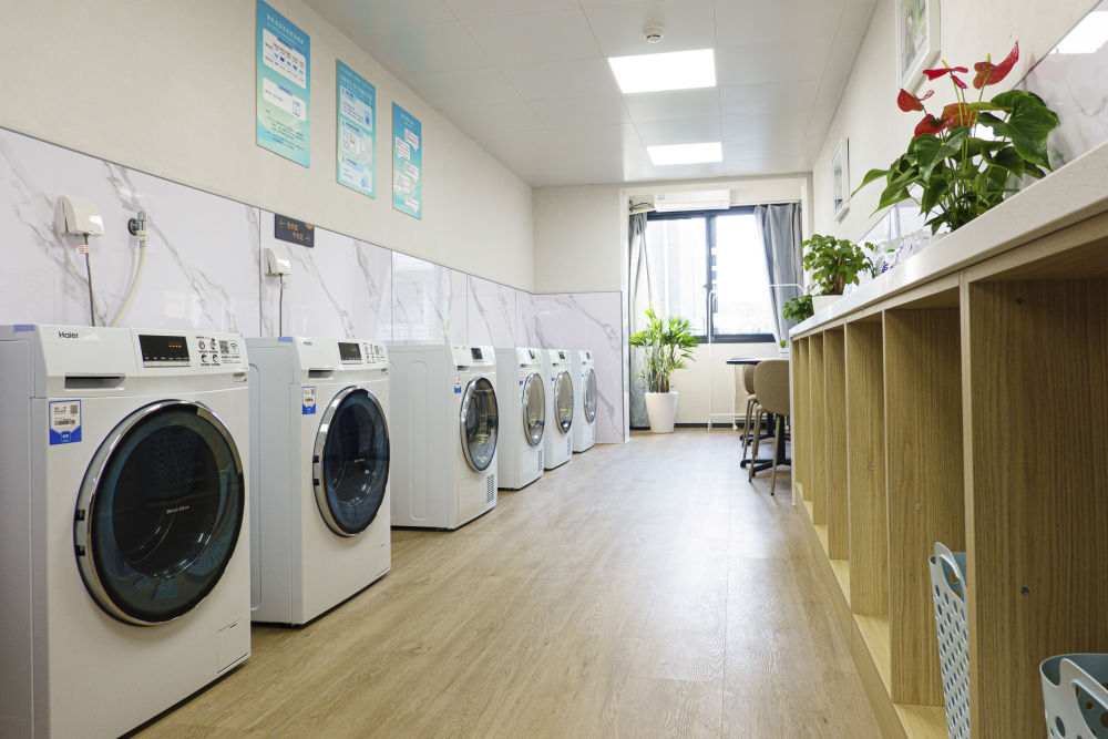 閔行區新時代城市建設者管理者之家的共享廚房和共享洗衣房。