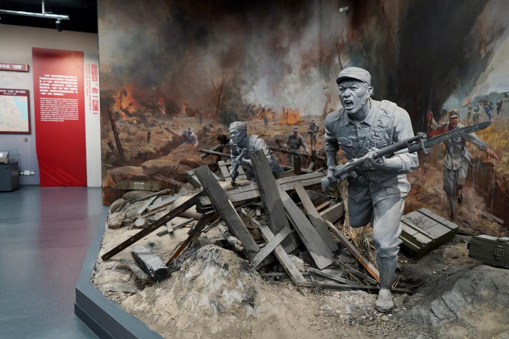 這是近日拍攝的新四軍紀念館內的鐵軍忠魂雕塑。新華社記者 李博 攝