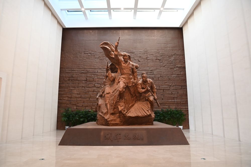 ↑鹽城新四軍紀念館內陳列的雕像(2023年11月24日攝)。