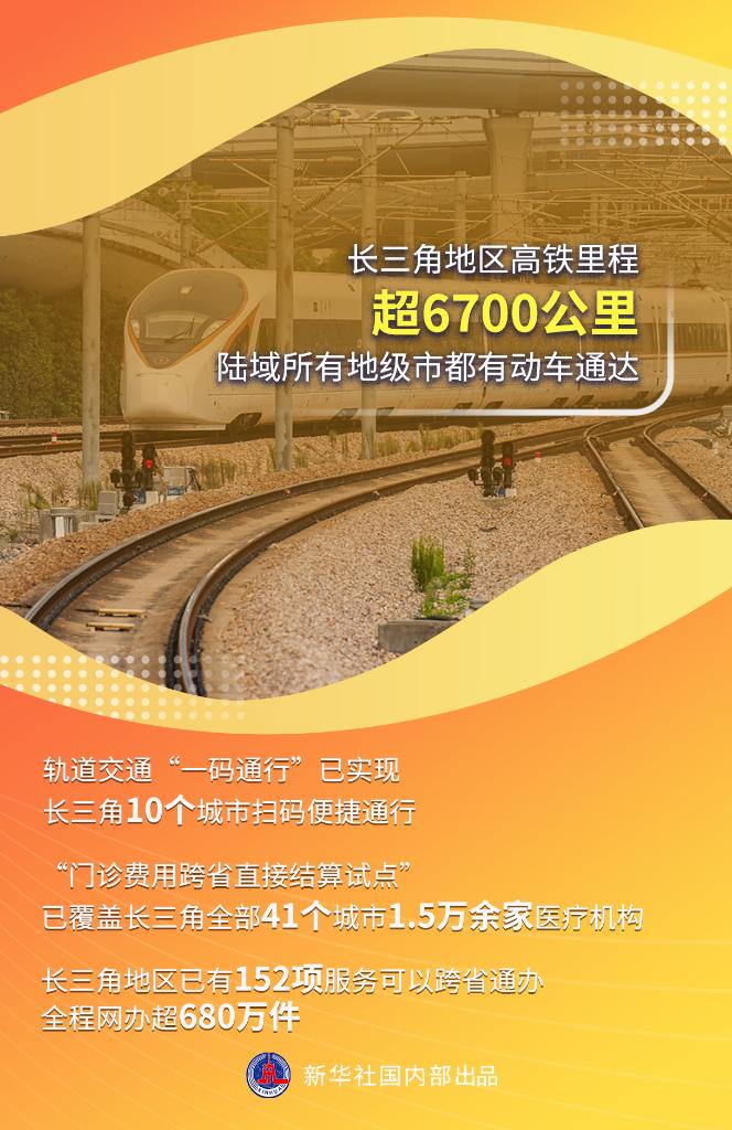 民生服務“一卡通”:軌道交通“一碼通行”已實現長三角10個城市掃碼便捷通行;“門診費用跨省直接結算試點”已覆蓋長三角全部41個城市1.5萬余家醫療機構。