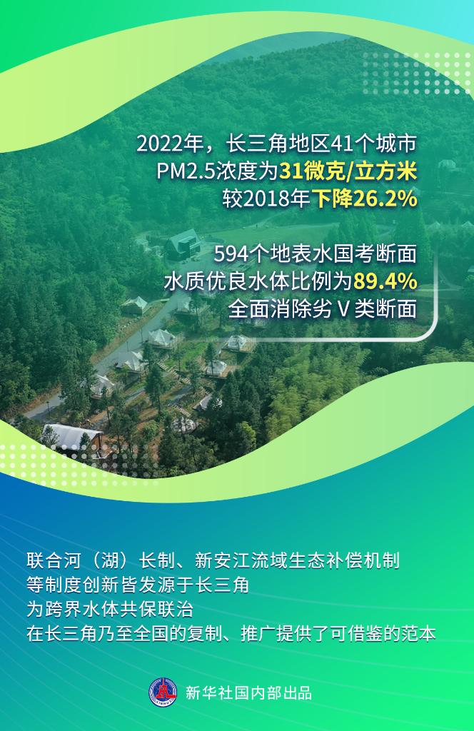 2022年,長三角地區41個城市PM2.5濃度為31微克/立方米,較2018年下降26.2%。594個地表水國考斷面水質優良水體比例為89.4%,全面消除劣Ⅴ類斷面。