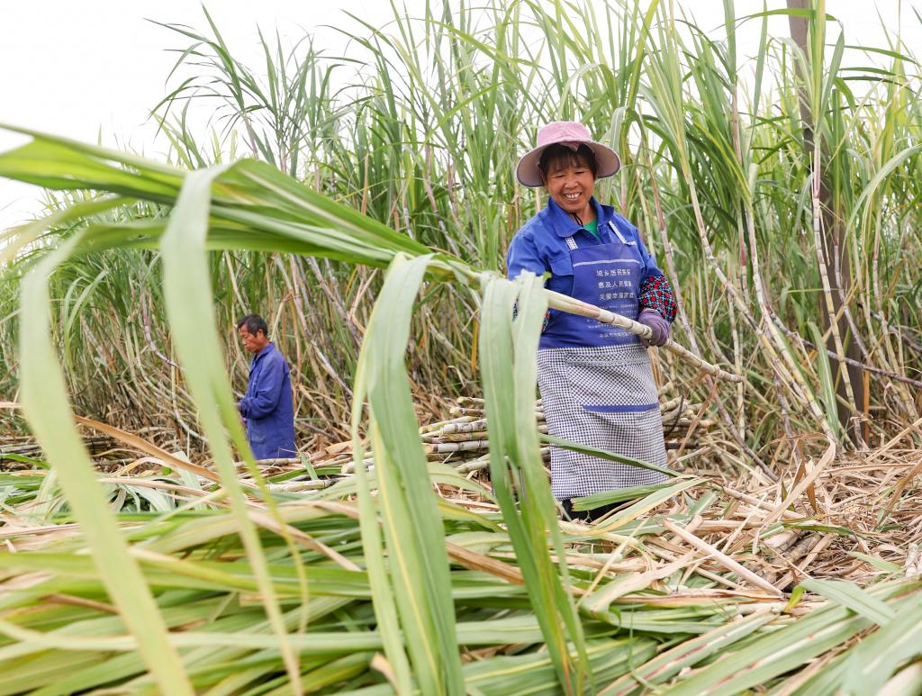 近日,在廣西來賓市興賓區,蔗農正在砍收甘蔗。新華社記者 胡星宇 攝