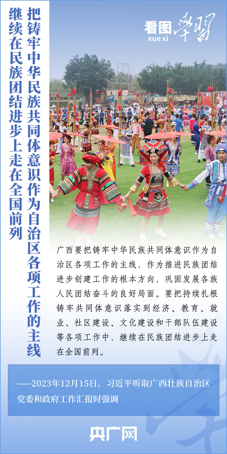 12月14日至15日,剛剛結束對越南進行國事訪問的習近平總書記在廣西考察并聽取廣西壯族自治區黨委和政府工作匯報。總書記對廣西發展提出殷切希望,強調廣西要發揮自身優勢,以鑄牢中華民族共同體意識為主線,解放思想、創新求變,向海圖強、開放發展,努力在推動邊疆民族地區高質量發展上展現更大作為,奮力譜寫中國式現代化廣西篇章。一起來學習!