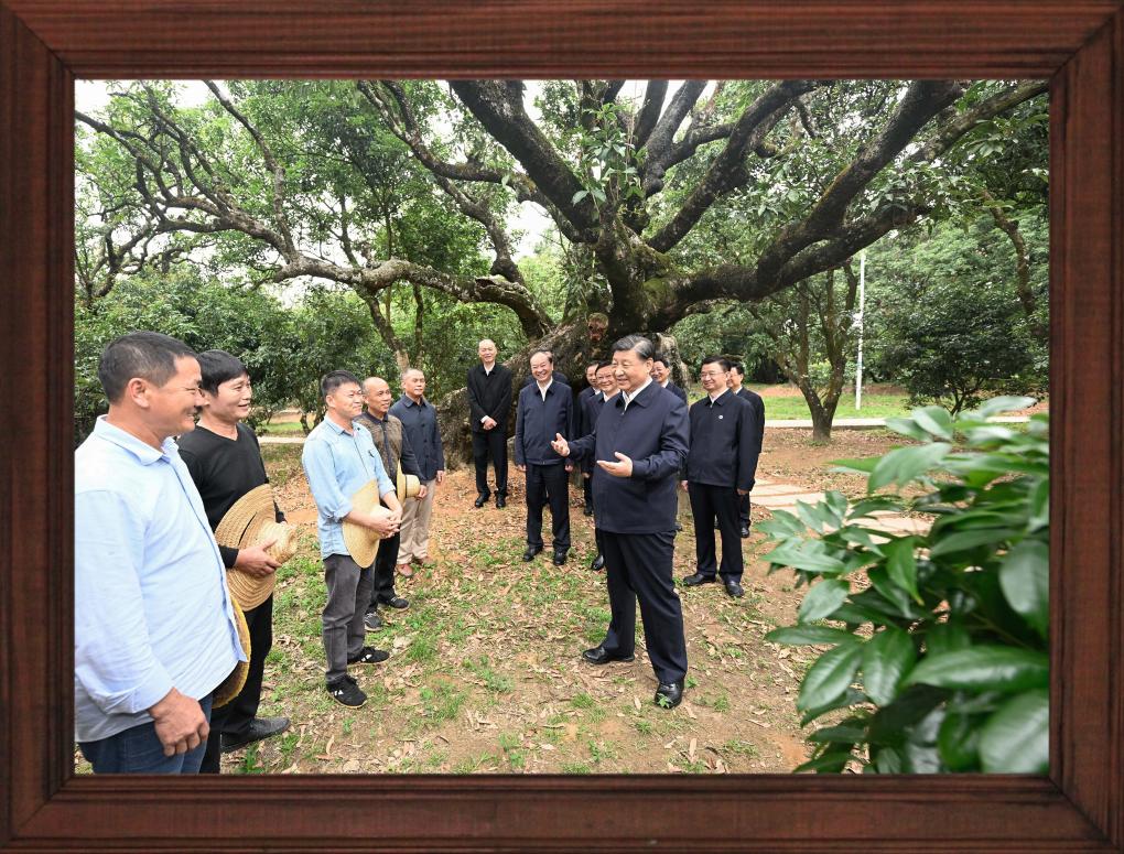 12月31日晚,國家主席習近平發表二〇二四年新年賀詞。 推近、定格、銘記,透過總書記身后書架上的一張張照片,我們記住過去,也對未來充滿信心。 不變的情懷 幾張老照片,在書架上擺放多年,人們已經非常熟悉。 習近平同志青年時期的軍裝照,連續第3年出現,擺放在書架醒目位置。 這令人不由得想起10年前的一段暖心對話—— 2013年11月,湖南十八洞村,村民石拔三老人見到了來此考察的習近平總書記。 “怎么稱呼您?”“我是人民的勤務員。” 歲月流轉,初心不改。從照片上的青年,到人民的勤務員,“我將無我,不負人民”的赤子情懷始終如一。 家庭是個人溫馨的港灣。習近平同志一家三口和父親習仲勛在一起、習近平同志在福州時帶女兒玩的照片,自總書記第一次發表新年賀詞以來,就一直擺在書架上。 2023年,又有幾張新的總書記家庭照片映入眼簾。 一張是習仲勛同志的單人照。 2023年是習仲勛同志誕辰110周年。習近平總書記從小深受父親影響,形容父親“像一頭老黃牛,為中國人民默默地耕耘著”,“這也激勵著我將自己的畢生精力投入到為人民群眾服務的事業中,報效養育我的錦繡中華和父老鄉親”。 同夫人彭麗媛在深圳錦繡中華景區的留影、習近平夫婦懷抱女兒的合影,也是第一次出現在書架上。 天下之本在家。習近平總書記指出,家庭和睦則社會安定,家庭幸福則社會祥和,家庭文明則社會文明。 修身、齊家,家好、國更好。習近平總書記率先垂范,對家人的責任、對家風的傳承、對家教的認真令人動容。 不停的步履 11張2023年拍攝的照片,留下習近平總書記過去一年治國理政的經典瞬間。 2023年,習近平總書記共進行了16次國內考察,出訪4次,在國內數十次會晤到訪的各國各界人士。 將鏡頭拉遠,總書記的身影不辭萬里—— 向南,習近平總書記來到位于我國大陸最南端的廣東省湛江市徐聞縣;向北,考察中國最北端的黑龍江省漠河市北極村;向西,視頻連線守衛祖國西大門的新疆軍區紅其拉甫邊防連執勤哨所。 這張同紅其拉甫邊防連執勤哨所等進行視頻通話的拼版照片,正是書架上的新照片之一。 “黃河九曲、長江奔流,總讓人心潮澎湃、豪情滿懷。”2023年,長江流經的11個省市里,習近平總書記考察了4個;黃河沿線的9個省區里,考察了5個;大運河涉及的8個省市里,考察了5個。 北瀕長江、南臨廬山、東枕鄱湖,江西九江的中國石化九江分公司位置特殊。10月,習近平總書記來到這里時,員工們圍攏過來紛紛向總書記問好。 總書記親切地說,希望你們按照黨中央對新型工業化的部署要求,堅持綠色、智能方向,扎扎實實、奮發進取,為保障國家能源安全、推動石化工業高質量發展作出新貢獻。 “追求卓越 勇創一流”——墻上的標語仿佛大家的回應。這一幕,也被相機定格。 將鏡頭推近,總書記的關切無微不至—— 這是對生產的關心。 萬畝甘蔗林中,習近平總書記同身著民族服裝的蔗農走在一起,大家的笑容像甘蔗一樣甜。總書記“為保障國家糖業安全、促進蔗農增收致富發揮更大作用”的叮嚀深入人心。 古老荔枝樹下,總書記同現場技術人員親切交流,指出要著力做好“土特產”文章,以產業振興促進鄉村全面振興。 這是對企業的關注。 9月,習近平總書記來到浙江義烏國際商貿城考察,人們紛紛從商鋪中走出來,掌聲、問候聲、歡呼聲此起彼伏。 面對商戶、小企業主們,總書記點贊道:“義烏小商品闖出了大市場、做成了大產業,走到這一步很了不起,每個人都是參與者、建設者、貢獻者。” 這是對人民的關懷。 2023年,華北、黃淮等地出現極端降雨,引發洪澇和地質災害。 北方入冬之際,習近平總書記來到北京、河北受災較重的相關地區,看望慰問受災群眾。書架上這張照片,便是總書記在北京門頭溝妙峰山鎮水峪嘴村考察時留下的。 一度被洪水淹沒的水峪嘴村已經修葺一新,村民家中窗明幾凈、暖氣充足。 少年兒童的成長,習近平總書記一直牽掛在心,書架上多次出現總書記同孩子們在一起的場景。 2023年精選的,是一張習近平總書記在北京育英學校的照片。 看到孩子們正在學生農場勞動,總書記關心地說:“希望同學們從‘學農’中感受到農作的艱辛和農民的不易,從小養成熱愛勞動、珍愛糧食、尊重自然的良好習慣,為建設美麗中國作貢獻。” 不竭的力量 國徽高懸,熠熠生輝。這是一個歷史性的瞬間。 2023年3月10日,北京人民大會堂。全票當選國家主席、中央軍委主席的習近平,左手撫按《中華人民共和國憲法》,右手舉拳,面向近3000名全國人大代表,鄭重宣誓。 錚錚誓言,響徹人民大會堂,回蕩在960萬平方公里土地上,回蕩在億萬中華兒女心中。 重溫激動人心的一刻,我們信心十足、精神百倍。 信心,來自堅強的領導核心—— 書架上,擺放著習近平總書記在內蒙古自治區巴彥淖爾市臨河區國營新華林場考察時的一張照片。 走進正在治理的沙地,總書記感慨:“ 像‘三北’防護林體系建設這樣的重大生態工程,只有在中國共產黨領導下才能干成。三北地區生態非常脆弱,防沙治沙是一個長期的歷史任務,我們必須持續抓好這項工作,對得起我們的祖先和后代。” 言辭懇切。一個對于時間的理解“以百年、千年為計”的大黨,正在用行動書寫“對歷史負責,對人民負責”。 信心,來自深厚的文化底蘊—— 這張在四川廣漢三星堆博物館新館拍