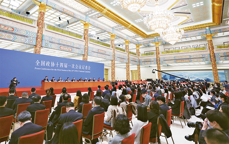 中國共產黨領導的多黨合作和政治協(xié)商制度作為我國一項基本政治制度,是中國共產黨、中國人民和各民主黨派、無黨派人士的偉大政治創(chuàng)造,是從中國土壤中生長出來的新型政黨制度。長期以來,各民主黨派同中國共產黨長期共存、互相監(jiān)督、肝膽相照、榮辱與共,履行民主監(jiān)督職能,在幫助中國共產黨科學決策、民主決策、依法決策上作出了重要貢獻。圖為2023年3月5日,全國政協(xié)十四屆一次會議在北京人民大會堂舉行民主黨派中央和全國工商聯(lián)領導人記者會。 新華社記者 曹燦/攝