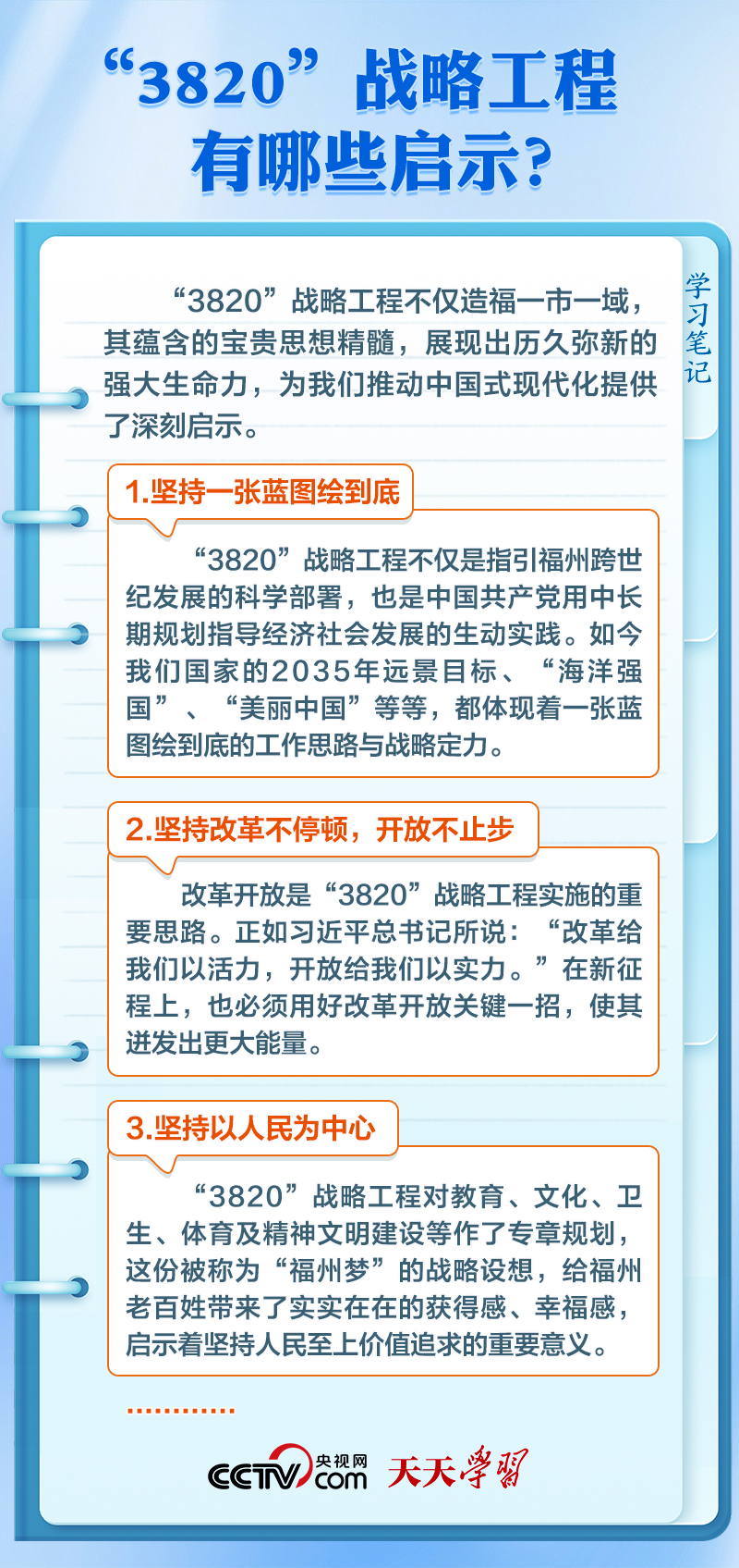 天天學習上世紀90年代,習近平在福州工作期間,親自主持編制了《福州市20年經濟社會發展戰略設想》(簡稱“3820”戰略工程),系統謀劃了福州3年、8年、20年經濟社會發展的目標、步驟、布局、重點等,為福州擘畫了美好藍圖,確立了總綱領、總方略。