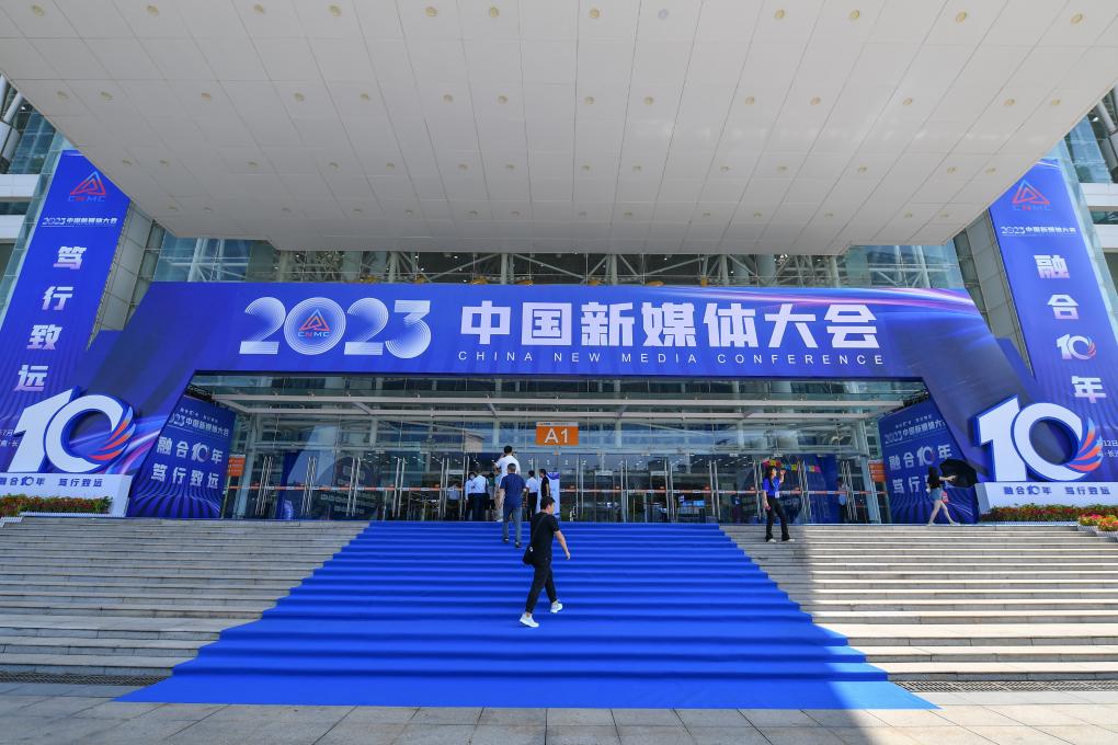 這是2023年7月12日拍攝的2023中國新媒體大會中國新媒體技術展外景。新華社記者 陳澤國 攝