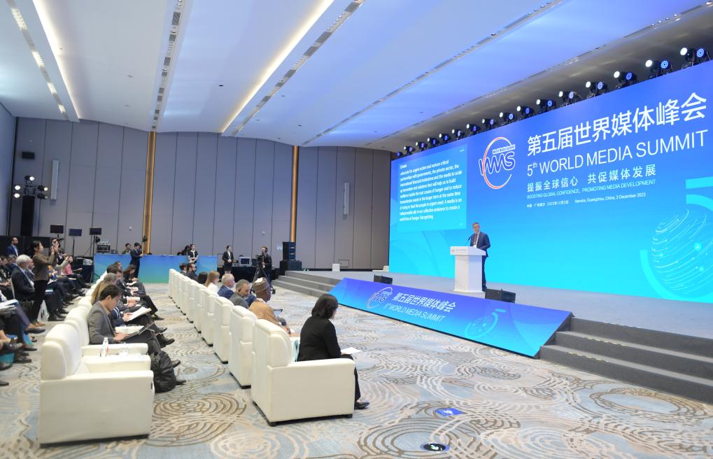 ??2023年12月4日,以“提振全球信心 共促媒體發展”為主題的第五屆世界媒體峰會在廣州南沙舉行平行分論壇活動,嘉賓在分論壇上發言。新華社記者 盧漢欣 攝
