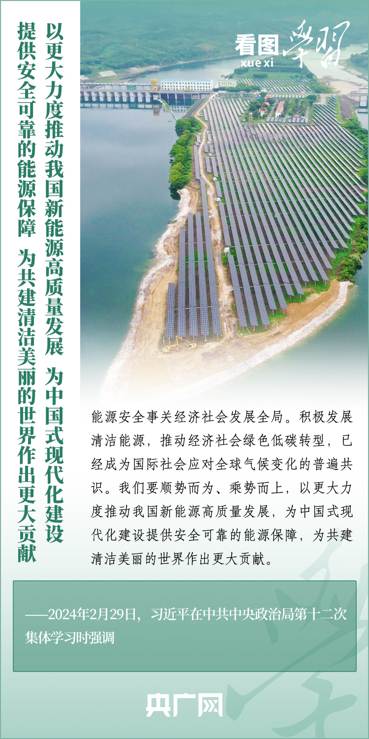 在主持最新一次集體學(xué)習(xí)時(shí),總書(shū)記說(shuō),我們要順勢(shì)而為、乘勢(shì)而上,以更大力度推動(dòng)我國(guó)新能源高質(zhì)量發(fā)展,為中國(guó)式現(xiàn)代化建設(shè)提供安全可靠的能源保障,為共建清潔美麗的世界作出更大貢獻(xiàn)。