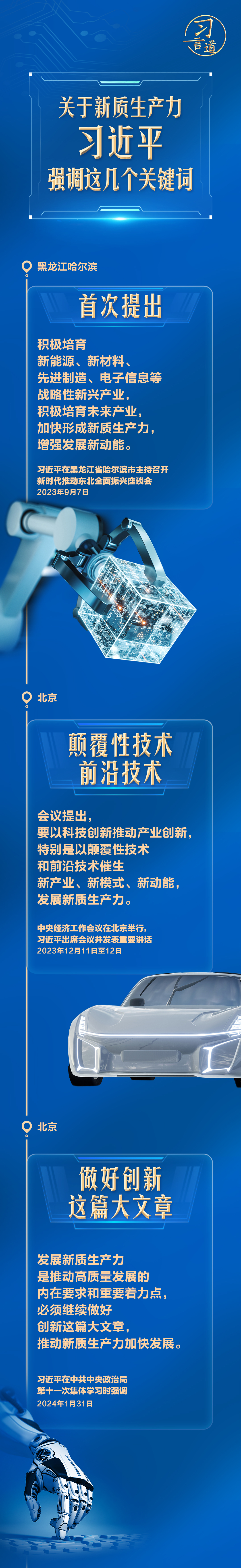 從去年9月在黑龍江考察時首次提出,到今年1月在中央政治局第十一次集體學習時系統闡述,再到此次兩會期間強調,習近平多次談到新質生產力。讓我們沿著總書記的足跡,一起研讀。
