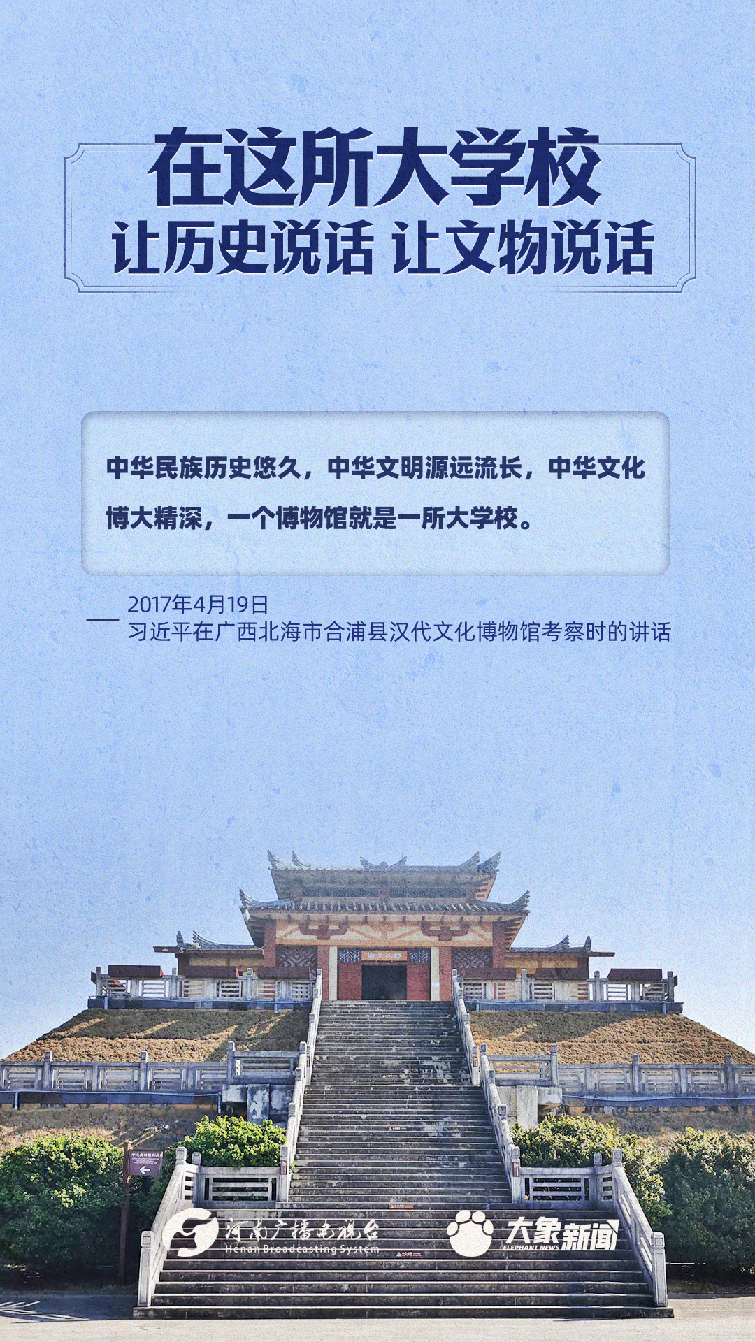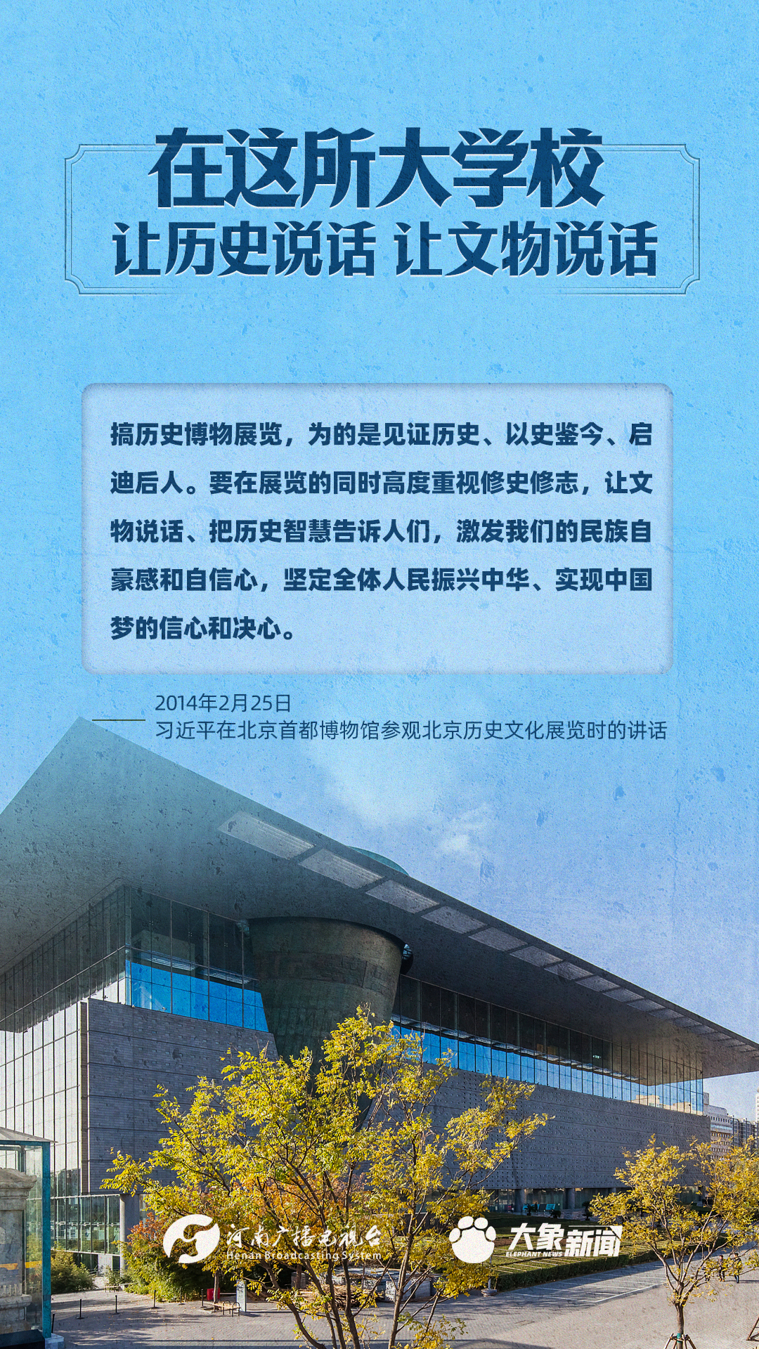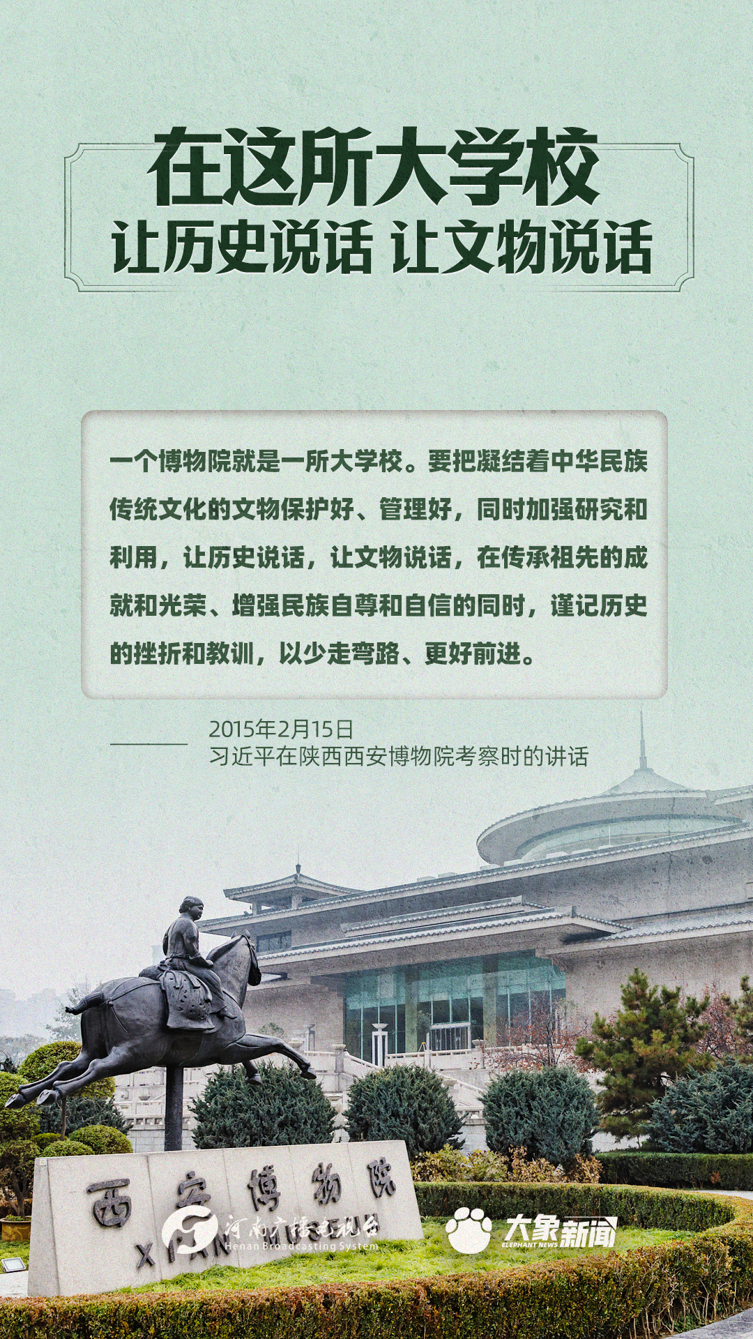 習近平總書記一直高度重視博物館工作,多次作出重要講話,強調“一個博物院就是一所大學校”,指出“讓歷史說話,讓文物說話”,要求“守護好、傳承好、展示好中華文明優秀成果”等等,金句連連。大象新聞進行了認真梳理,邀您一起學習。