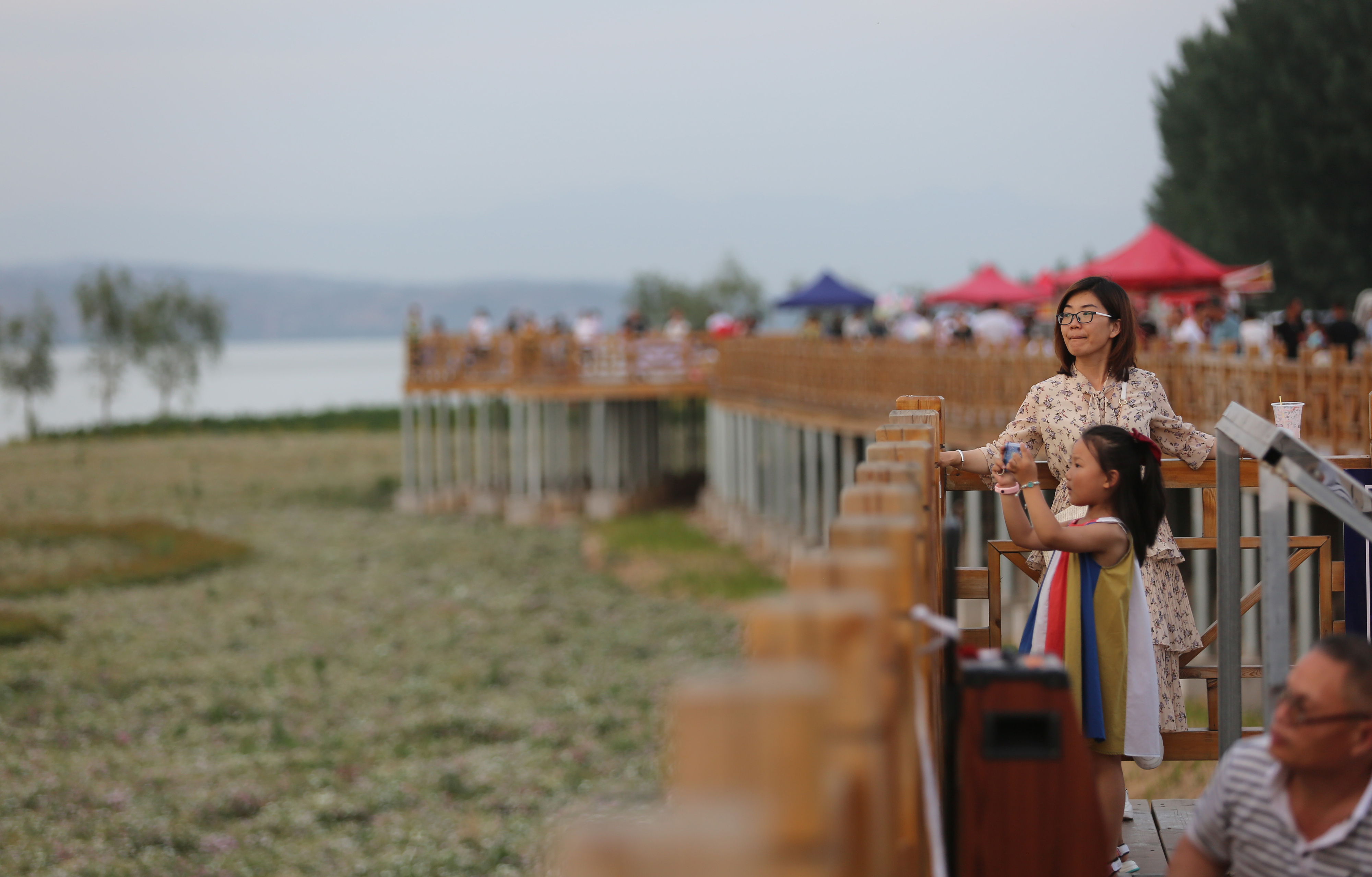 △ 位于三門峽境內的黃河生態廊道美景如畫,吸引著市民前來觀光旅游、納涼避暑。