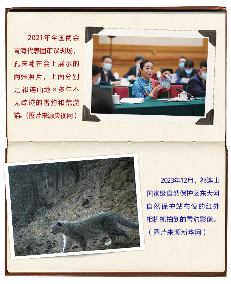 2021年3月7日,在全國兩會青海代表團審議現場,孔慶菊代表拿出的兩張“大萌貓”照片,吸引了習近平的目光。