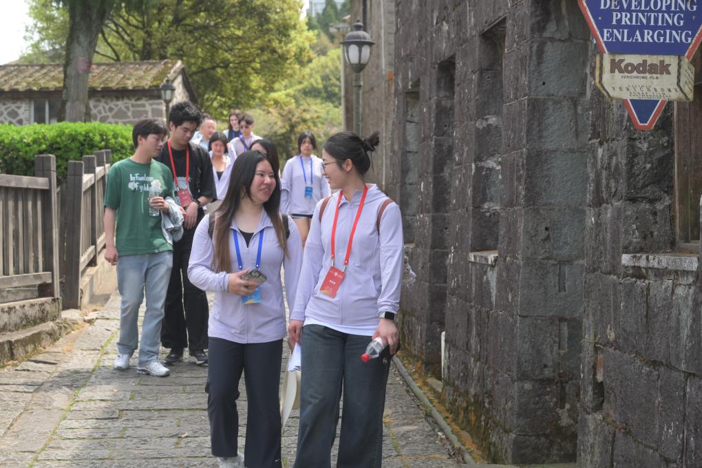 ??3月25日,福州大學外國語學院學生(前右)與美國太平洋大學學生(前左)在福州鼓嶺老街漫步交流。當日,來自美國俄勒岡大學、布朗大學、奧斯威格高級中學等校的美國學生與福州大學學生齊聚福州鼓嶺,參加“讀懂中國 相約福建”友好交流活動。兩國青少年走訪鼓嶺老街、萬國公益社、柳杉王公園等,感受鼓嶺百年中外交融歷史風貌,了解中美交往往事,暢談期待與希望,再續中美民間友好交往的“鼓嶺故事”。 新華社記者林善傳攝
