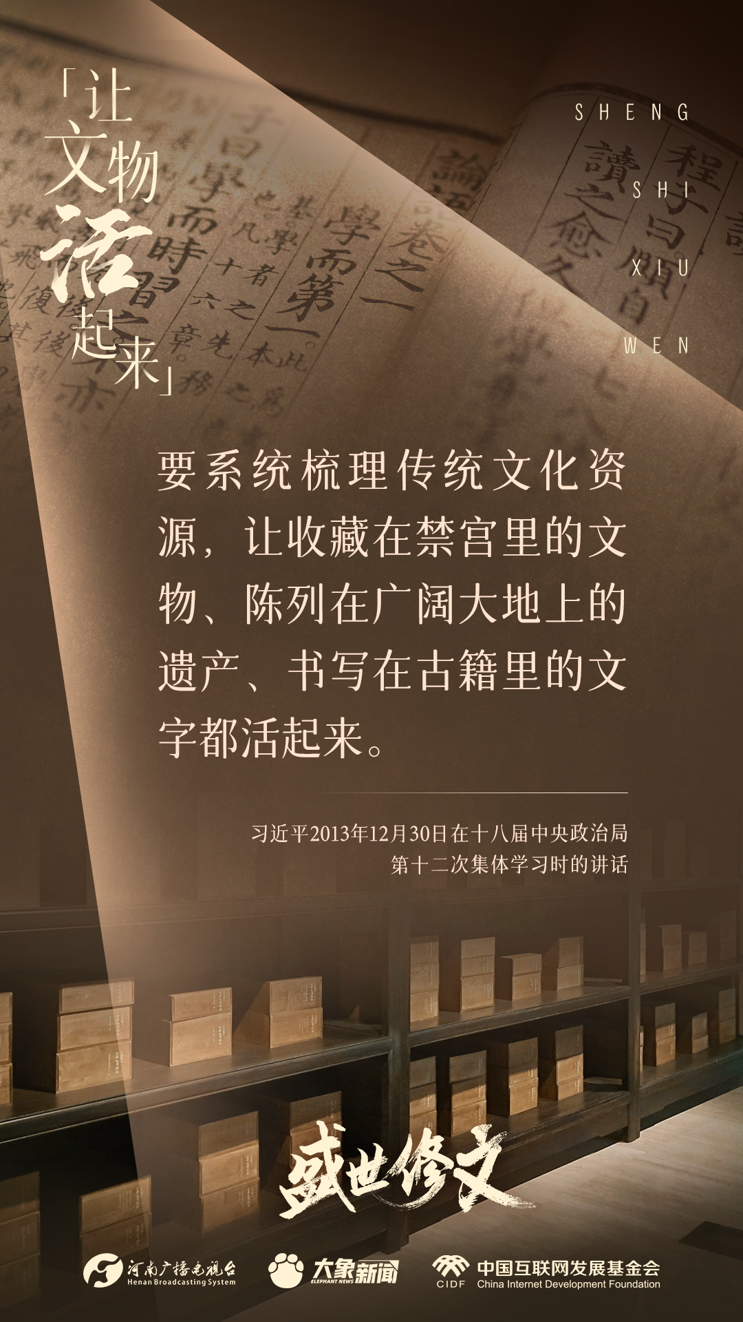 今天推出:習近平文化思想金句之《盛世修文|讓文物活起來》