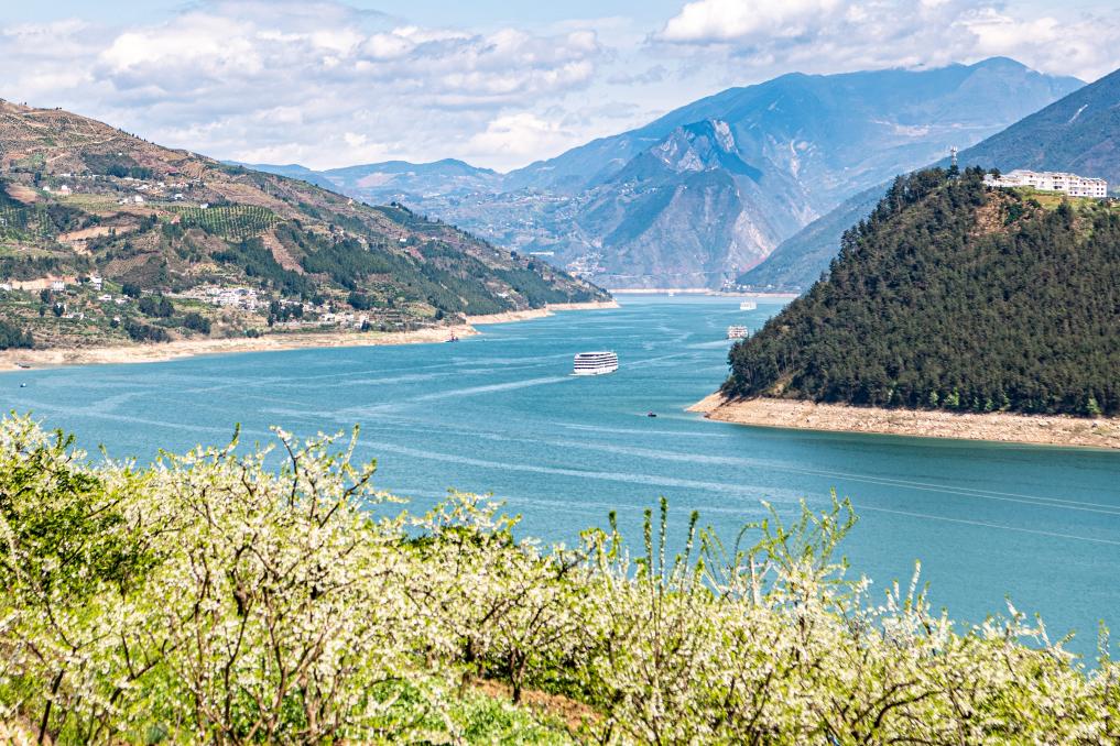 ??3月25日拍攝的重慶市巫山縣曲尺鄉長江兩岸的萬畝李花。新華社記者 唐奕 攝