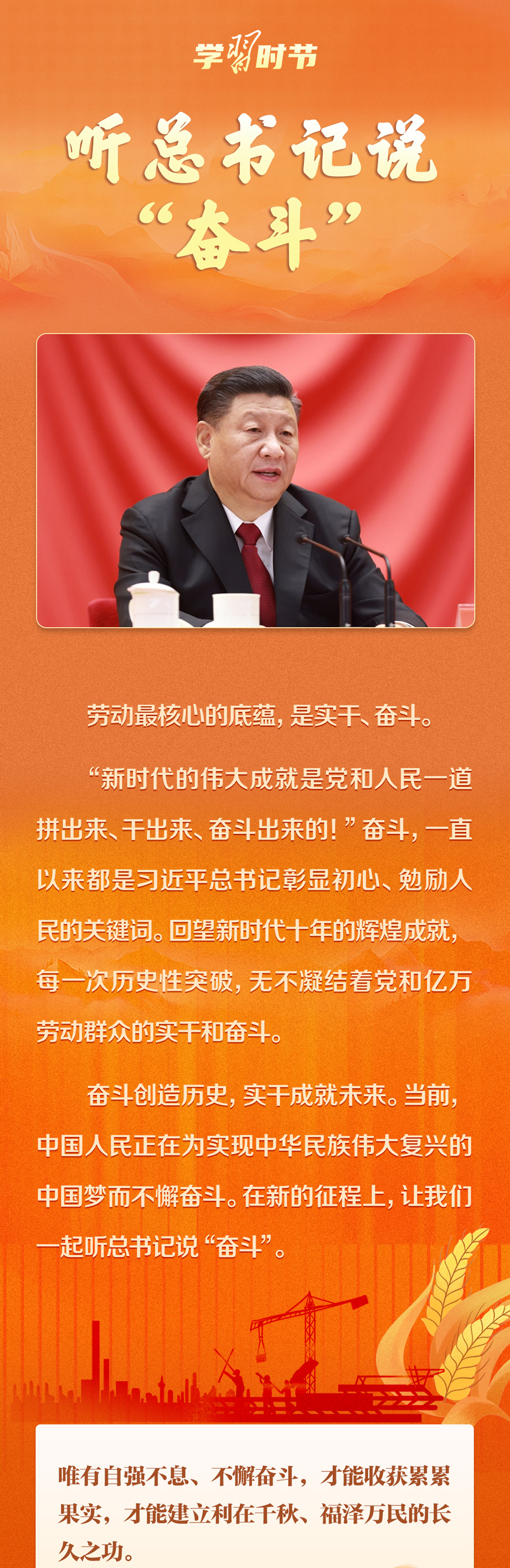 “全國各族人民都要向勞模學習,以勞模為榜樣,發揮只爭朝夕的奮斗精神,共同投身實現中華民族偉大復興的宏偉事業”。
