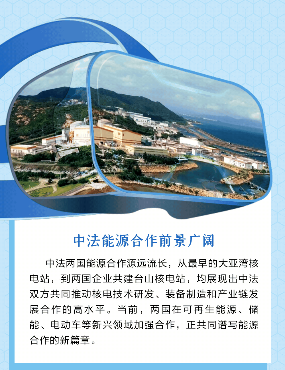 “法國是第一個(gè)同新中國正式建交的西方大國,也是最早同中國建立戰(zhàn)略伙伴關(guān)系和開展戰(zhàn)略對(duì)話、最早同中國開展民用核能合作的國家。”習(xí)近平主席強(qiáng)調(diào),中法是特殊的朋友,共贏的伙伴。
