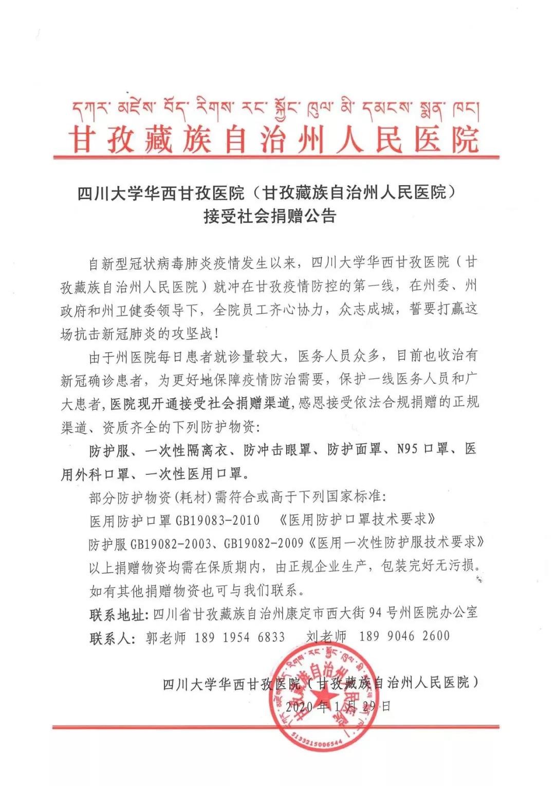 自新型冠狀病毒肺炎疫情發生以來,四川大學華西甘孜醫院(甘孜州藏族自治州人民醫院)就沖在甘孜疫情防控的第一線,在州委、州政府和州衛健委領導下,全院員工齊心協力,眾志成城,誓要打贏這場抗擊新冠肺炎的攻堅戰!