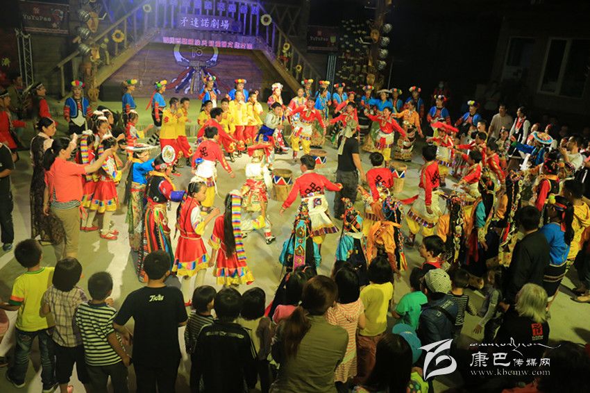 巴塘天籟童聲合唱團與阿里山小學小朋友、當地群眾、外來游客同跳巴塘弦子。