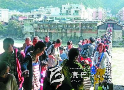 據縣文物局局長郭成燕介紹,今年“十一”黃金周期間,游覽瀘定橋的游客較往年更理性,沒有出現井噴現象,每天游客量比較平穩。游客主要以成都和重慶方向為主,85%以上的游客選擇自駕游出行。據悉,在10月2日這天,瀘定橋全天接待游客近萬人。為了確保游客安全,縣旅游部門在橋頭設立了安全警示牌,在游客高峰期,工作人員每5至10分鐘分批次放行,每次參觀放行不超過100人,并安排工作人員在瀘定橋中央疏導游客,確保游人安全。同時,在瀘定橋頭滾動播出參觀須知和瀘定橋介紹,引導游人參觀。黃金周期間,該縣旅游部門堅持24小時值班,隨時對瀘定橋及周邊進行安全巡查,確保安全。截至10月4日,參觀瀘定橋的游客約3.3萬人,門票收入達25萬多元。