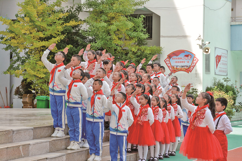 活躍提升組織生活也是少先隊(duì)工作強(qiáng)基固本的重要環(huán)節(jié)。通過(guò)健全少先隊(duì)階梯式成長(zhǎng)激勵(lì)體系;全面實(shí)施分批入隊(duì)、分段教育、分級(jí)激勵(lì)和推優(yōu)入團(tuán);依托“紅領(lǐng)巾獎(jiǎng)?wù)隆备采w隊(duì)中教育全過(guò)程等措施,全市14至15周歲新入團(tuán)團(tuán)員經(jīng)由少先隊(duì)組織推優(yōu)入團(tuán)達(dá)100%。此外,全覆蓋開展“開學(xué)第一堂隊(duì)課”、主題隊(duì)課活動(dòng),規(guī)范舉行入隊(duì)儀式等,讓少先隊(duì)員組織意識(shí)和光榮感全面增強(qiáng)。