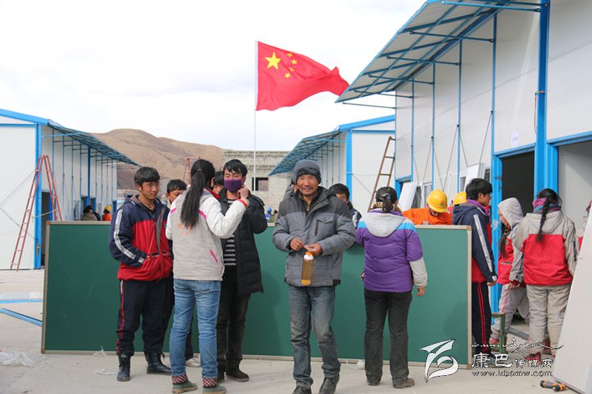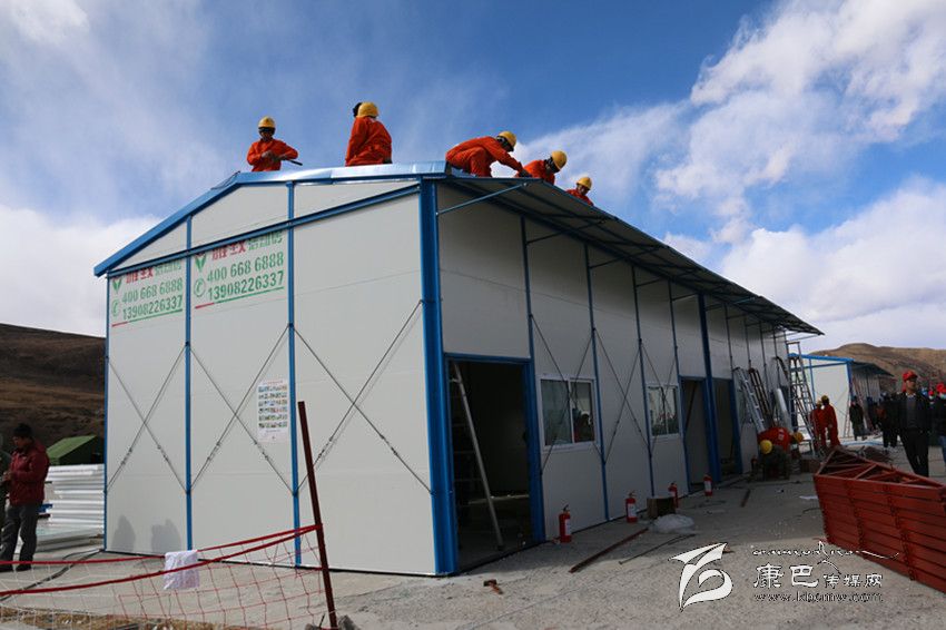 據現場來自雅致集成房屋有限公司的專業技術人員介紹,搭建一間板房,需要先支起框架,然后將面板和頂板逐步安裝。在高原極端天氣下,夜間建造板房難度可以說是非常之大。來自成都的專業技術人員們雖然經驗豐富,但也很少用到適合高原的特殊材質材料,很多時候都需要研究好方案、對策才能動工,所以進度有一點耽擱,否則的話一夜的時間里會有更多的板房呈現在孩子們的面前。