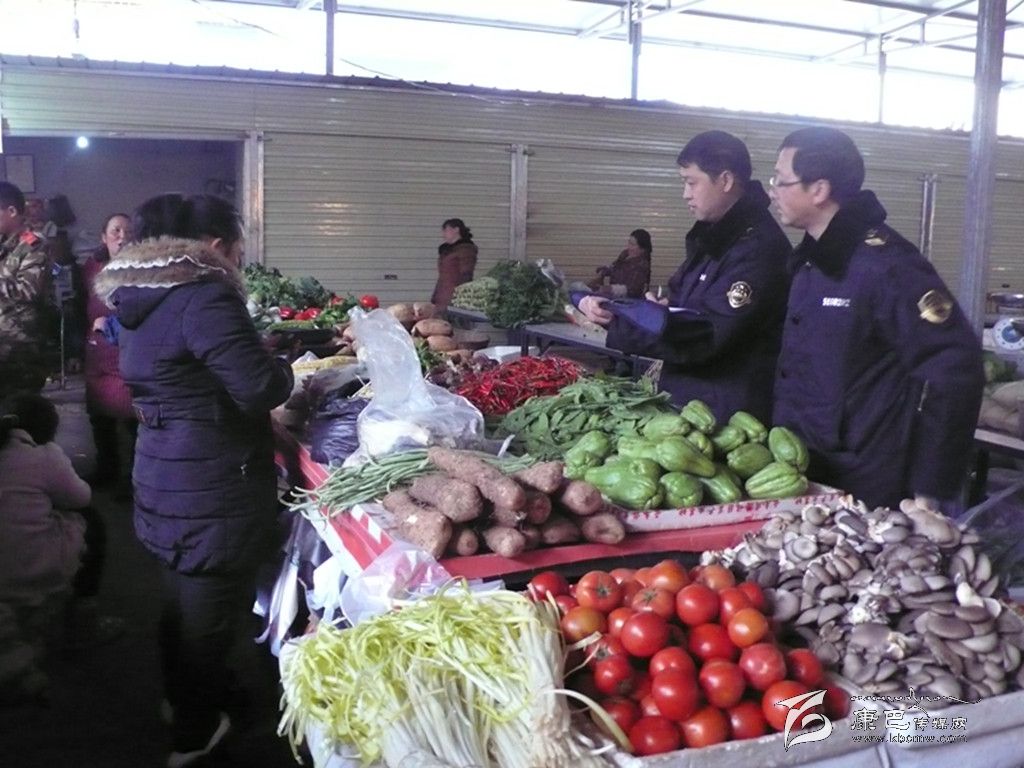 執法人員檢查農貿市場。